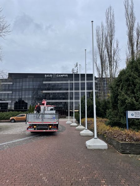 We rent 7-meter high flagpoles with a movable concrete base. The flagpoles for rent are made in Finland. Flagpoles are quick to install and transport by truck. A mobile concrete element installed on the ground is the best option for temporary use of the flag pole.