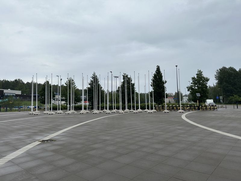 The flagpoles for rent are made in Finland.